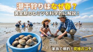 潮干狩りでテントが風に飛ばされたり、中が砂まみれになったりして困っていませんか?この記事では潮干狩りにおけるテントの選び方と設営術を徹底解説。強風対策の38cmペグや砂排出機能付きモデル、貝の鮮度を保つ拠点作りまで、家族で安全に楽しむためのプロの知見を50代パパが伝授します。