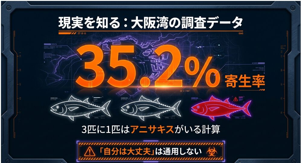 「本当にそんなにいるの?」と疑問に思うかもしれませんね。 日本近海の魚類を調査した学術データ(※日本寄生虫学会等)によると、検査されたチヌの約35.2%からアニサキスが確認されたという報告があります。