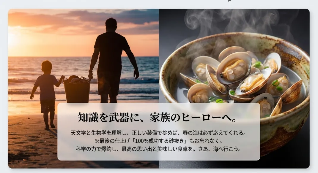 今回は、51歳の海好きパパとしての経験と、専門的なデータの両面から、皆さんが確実にバケツ一杯のアサリを持ち帰るための「勝てるロジック」を分かりやすくお伝えしますね。