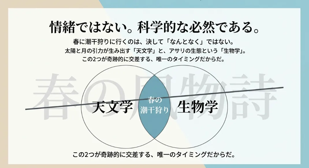 「潮干狩りといえば春」というイメージがありますが、なぜ夏や冬ではなく、春が黄金期なのか不思議に思ったことはありませんか?実はこれ、単なる慣習ではなく、天文学的な海の動きと、貝たちの生きる知恵が完璧に重なった「科学的な必然」なんです。