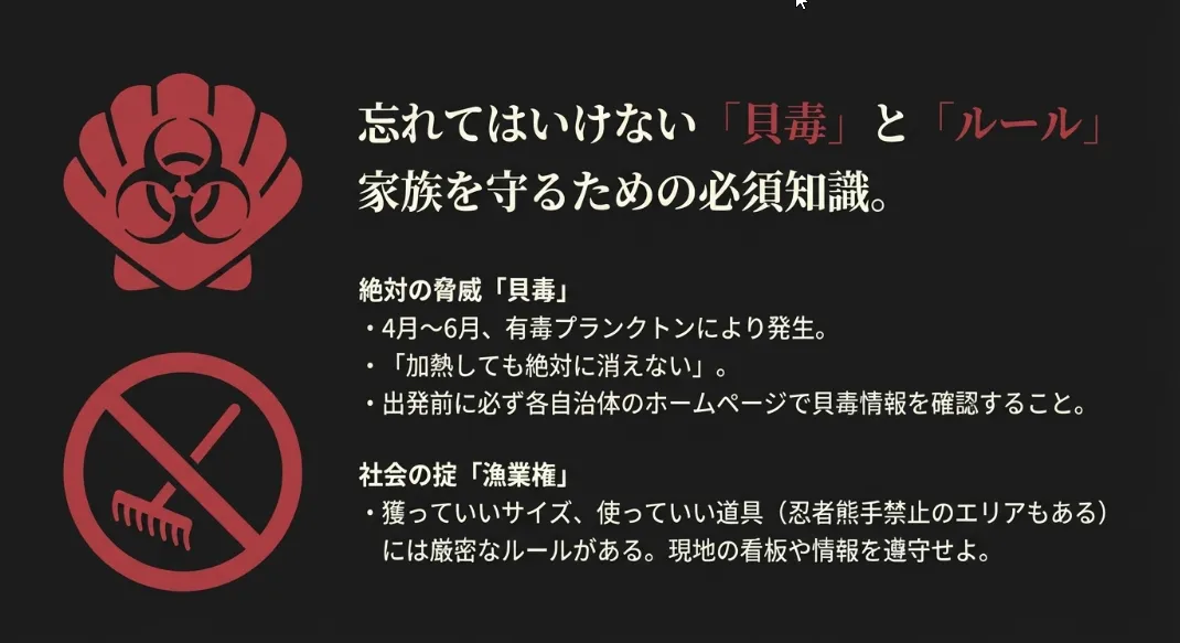 安全に楽しむパパの作法!貝毒と漁業権のルールを賢く確認