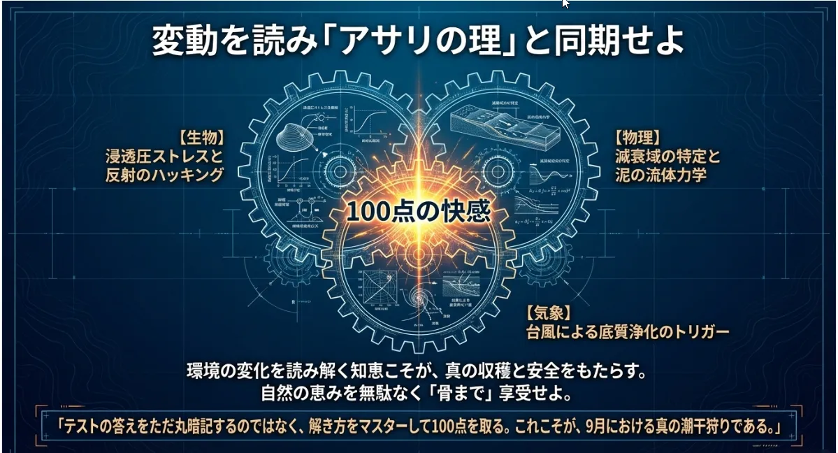 9月の潮干狩りは、春のような気軽なレジャーではありません。それは、刻々と変わる自然のサインを読み解き、自分を海に同期させる「知的なサバイバル」です。