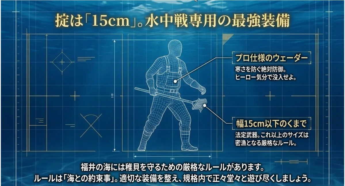 1. その熊手、使って大丈夫?福井県漁業調整規則の「幅15cm」制限
