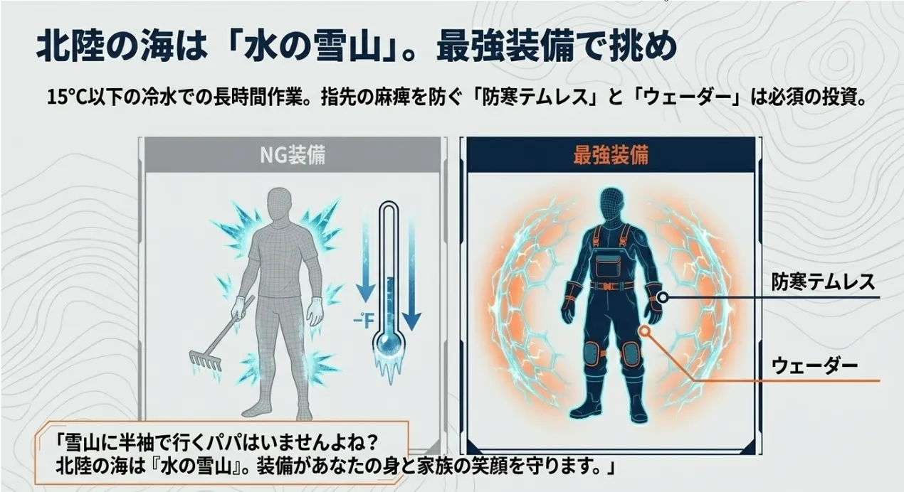 北陸の冷たい海でも快適!収穫をブーストする必須道具4選