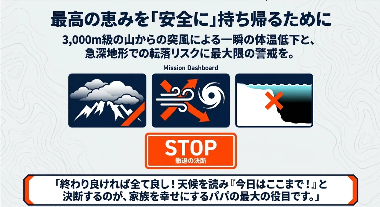 僕も若い頃、山からの突風を甘く見ていて、バケツや道具が海へ飛ばされそうになったことが何度もあるんだ。特に子供を連れていると、風で体温が奪われるスピードは想像以上に早いよ。無理は禁物。海の恵みに感謝して、早めに切り上げる決断も「デキるパパ」の証拠だと思うな!