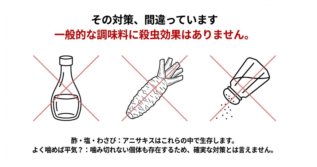 調味料では死なない科学的根拠とは?「酢締めで安心」という思い込みが招くリスクを論理的に解説します。