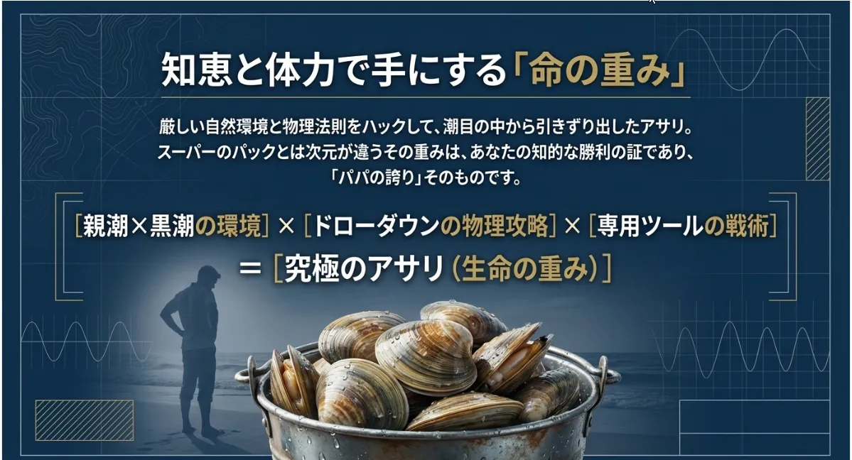 いわきの潮干狩りは、ただのレジャーではありません。太平洋のダイナミックな物理現象と向き合い、その恩恵を自らの手で掴み取る、最高に知的な遊びです。親潮が運んできた栄養を、黒潮のエネルギーで肉に変えた、あのアサリの重量感。バケツがいっぱいになったとき、あなたはきっと、いわきの海のファンになっているはずです。