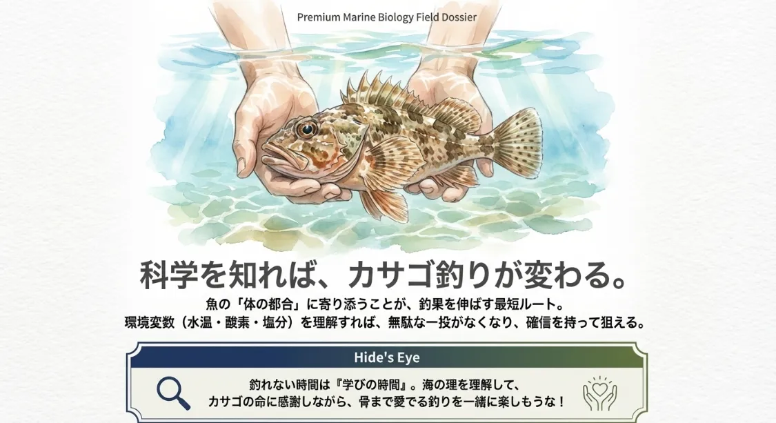 カサゴが餌を食べない理由、それは彼らが不機嫌だからではなく、一生懸命に環境の変化と戦っているサインでした。水温、酸素、塩分……目には見えないけれど、彼らの体の中で起きている「生化学的なドラマ」を想像してみてください。