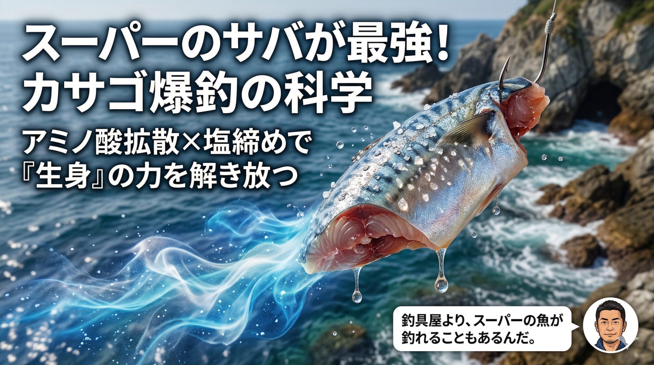 今回は、単なる節約術としてのエサ代用ではありません。アミノ酸の拡散速度や細胞の硬度変化といった、理系的な視点から「なぜスーパーのサバが最強なのか」を徹底解剖します。海の恩恵を余すことなく釣果に変える、ガチ勢の戦術をパパ目線で分かりやすくお伝えしますね。