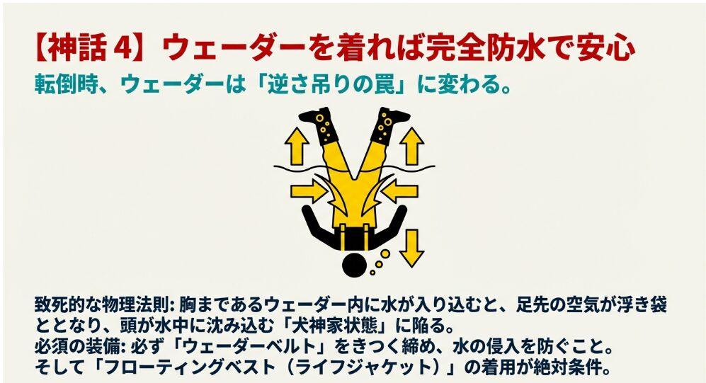 水中でも濡れずに快適に動ける、信頼の防水ウェーダーです。