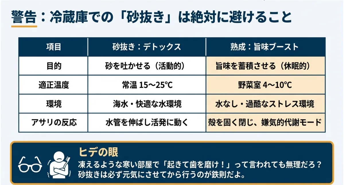 「冷蔵庫で砂抜き」は大失敗の元と知れ