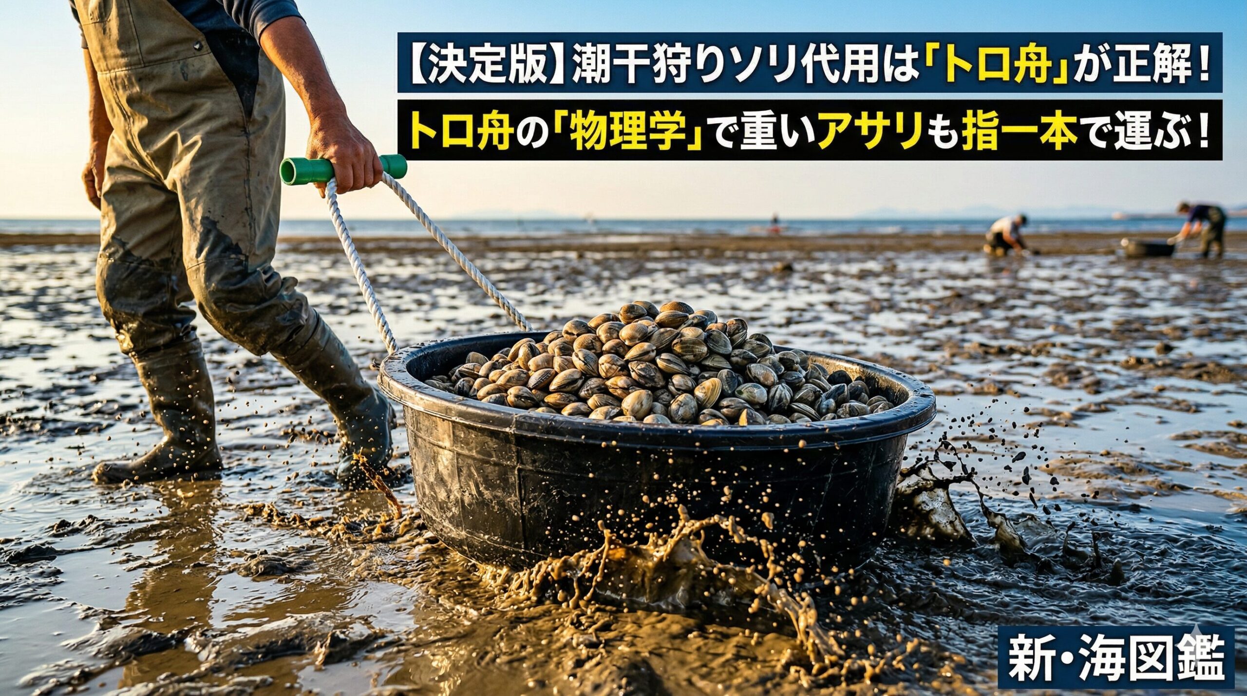 雪用ソリのたわみに悩まされる日々は、今日で終わりです。トロ舟という剛性体に収穫物を載せ、疎水性の高い底面で泥を切り裂く快感を、ぜひ次の干潮時に味わってみてください。重いはずの荷物が嘘のように付いてくるその瞬間、あなたは干潟で最もスマートに動く「知的なサバイバー」になっているはずです。