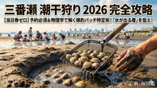 2026年の三番瀬での潮干狩りは完全予約制!当日券ゼロの鉄則から、人工砂の物理学を応用したアサリの探し方まで管理人ヒデが徹底解説。三番瀬の潮干狩りで家族全員を笑顔にする「砂の湿り気」の見極め方や、持ち帰り後の砂抜き術を伝授します。物理を味方にバケツ一杯の獲物と感動を掴もう!