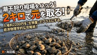 潮干狩り完全攻略 潮干狩り相場を物理で解明!1kg1100円のあさりを賢く回収する極意 2026年の潮干狩り相場を徹底解説!市場価格1,700円に対し、管理場の獲得単価は1,100円。損益分岐点となる2kgを確実に回収するための物理的戦略と、エネルギー収支から見た真の価値を「新・海図鑑」管理人ヒデが伝授します。効率的な道具選びで、賢く潮干狩りの相場をハックしましょう。 2026.04.07 潮干狩り完全攻略