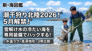 北陸の潮干狩りは太平洋側とは別世界!雪解け水の影響で時期は5月からが本番です。潮が引かない日本海特有の物理現象や、富山・石川・福井の県別攻略法、冷たい海でも快適な防寒テムレス等の必須道具をヒデが徹底解説。2026年の潮干狩りを北陸で楽しむための解決策が詰まった決定版ガイドです。
