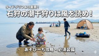 潮干狩り完全攻略 石狩の潮干狩りは風を読め!北海道・あそびーち周辺のコツと装備 北海道の潮干狩りなら石狩がおすすめ!札幌から最短でアクセスでき、あそびーち石狩周辺は設備も充実。実は北海道の石狩での潮干狩りは「風向き」が成功の鍵。日本海特有の物理現象や忍者熊手を使った攻略法、家族で楽しめる黄金動線をプロの視点で徹底解説します。週末は家族で海へ! 2026.04.18 潮干狩り完全攻略