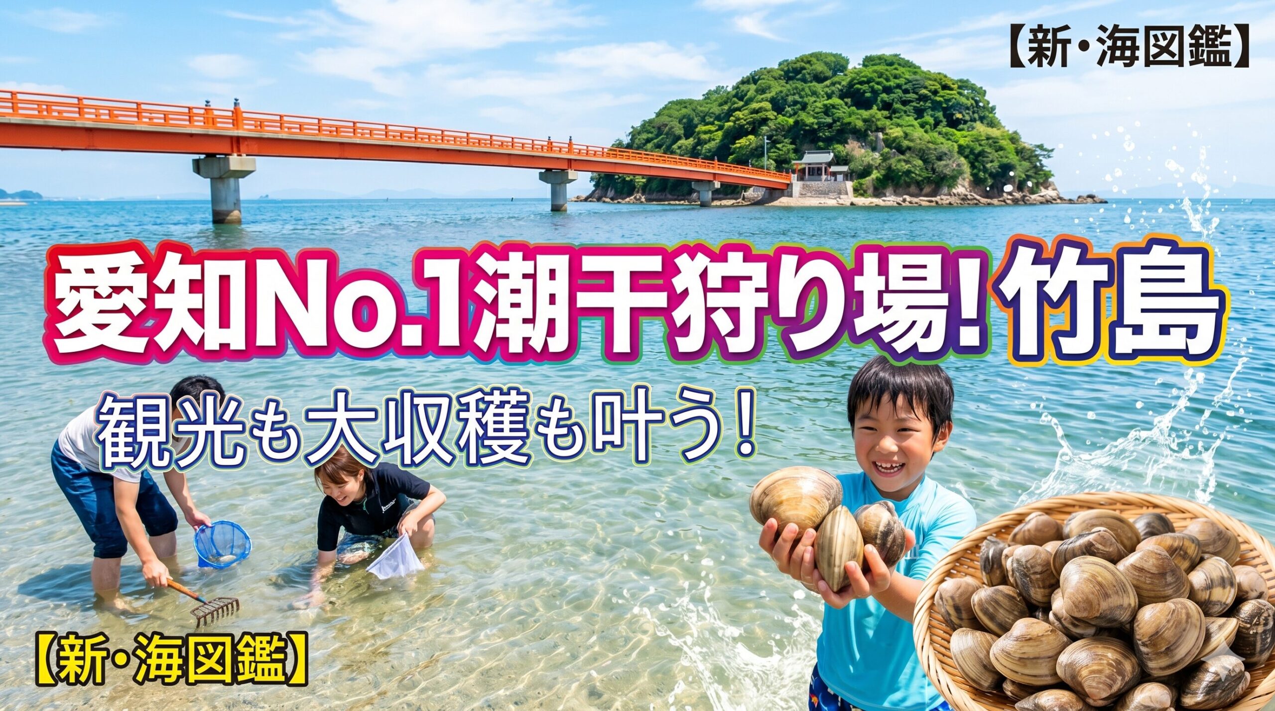 こんにちは!「新・海図鑑」管理人のヒデです。僕には3人の子供がいますが、毎年春になると「パパ、今年はどこの海に行くの?」とせがまれます。愛知県で潮干狩りといえば、いくつも名所がありますが、僕が「ここは格別だ」と断言できるのが蒲郡市の竹島です。