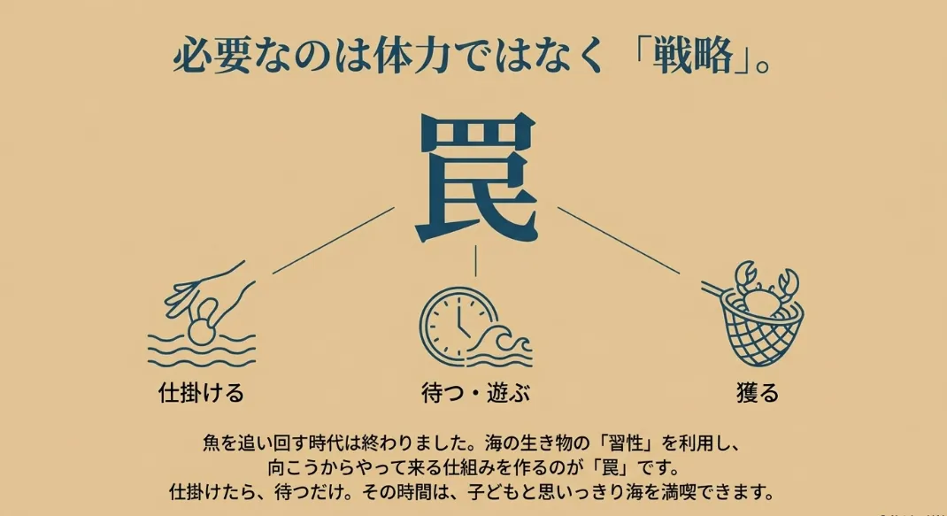 かつて私は海で怖い思いもしましたが、だからこそ「安全に、でも最高に楽しく」遊ぶコツを伝えていきたいと思っています。今回は、初心者の方や小さなお子さんでも、手軽に「獲れた!」という感動を味わえる罠遊びの世界をガイドしますね。難しい理屈抜きで、明日の磯遊びが100倍楽しくなる知恵を詰め込みました!