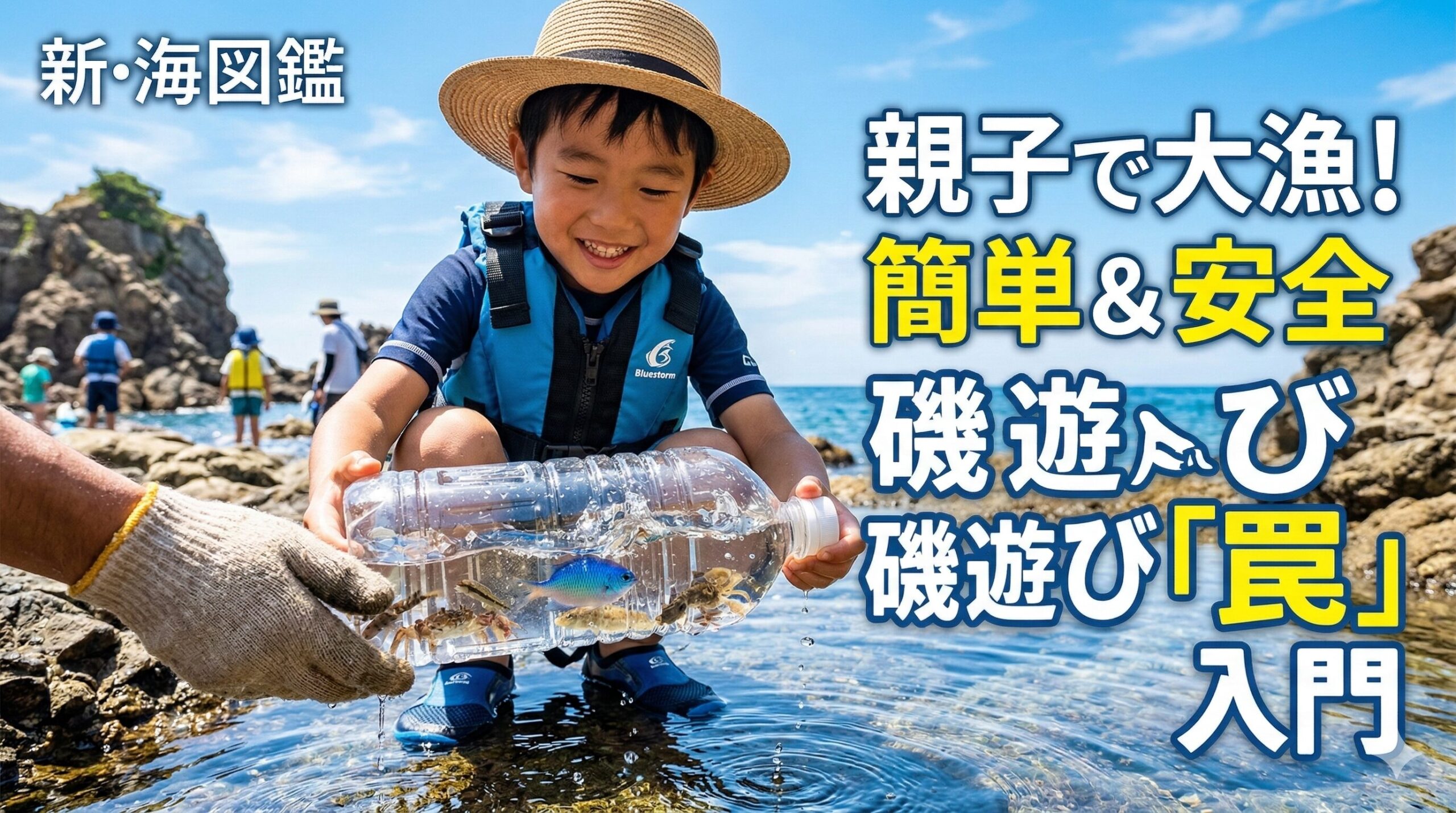 こんにちは、「新・海図鑑」管理人のヒデです!福井の海で3人の子供たちと遊び尽くしてきた51歳のパパです。磯遊びに行っても「なかなか生き物が見つからない」「網で追っても逃げられてしまう」……そんな経験はありませんか?実は、磯の生き物たちを捕まえるには、力任せに追いかけるよりも「罠」の仕組みをちょっと借りるのが一番の近道なんです。