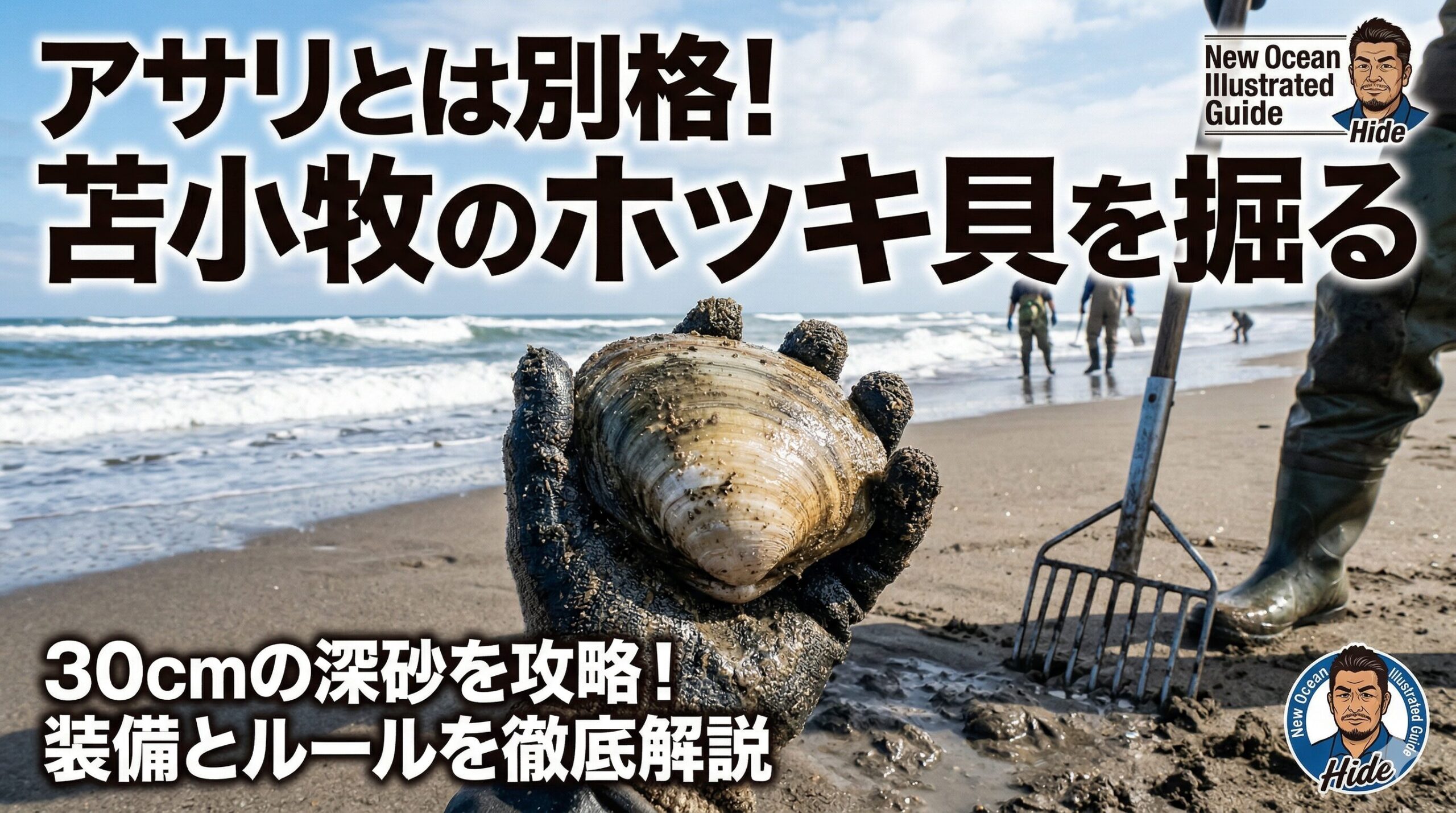 アサリとは比較にならない巨大なホッキ貝を獲るには、30cmの砂層をこじ開ける剛性のある道具と、太平洋の冷水から体温を守るウェーダーが必須です。この記事で、確実に獲るための物理とコツをマスターしましょう!