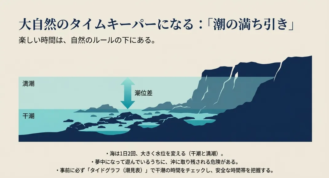 ただし、怪我や体調不良、そして密漁などの法的なルールについては、私たち大人がしっかりと境界線を引いてあげなければなりません。迷ったときは、現地の管理事務所や海上保安庁が発信する情報を頼ってください。プロの知識を借りることも、遊びを極めるパパのスキルのうちですよ。