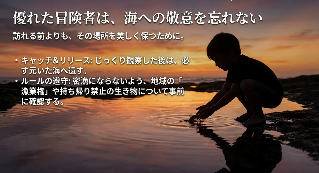 磯遊びを「最高な思い出」で終わらせるためには、自然のルールをリスペクトすることが欠かせません。