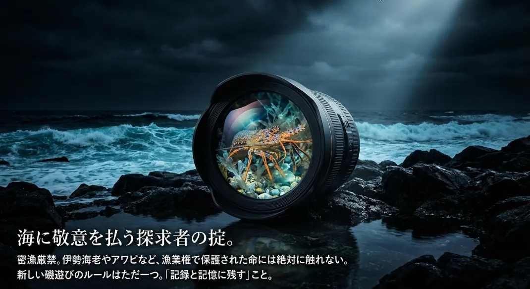 冬の磯遊びでは、古くから深夜の引き潮を利用した「イザリ」という採集文化がありました。しかし現代では、アワビやサザエなどの特定の生物を許可なく採集することは厳しく制限されています。悪気がなくても「密漁」とみなされると大変なことになりますので、各都道府県のルールを事前に必ず確認しましょう。