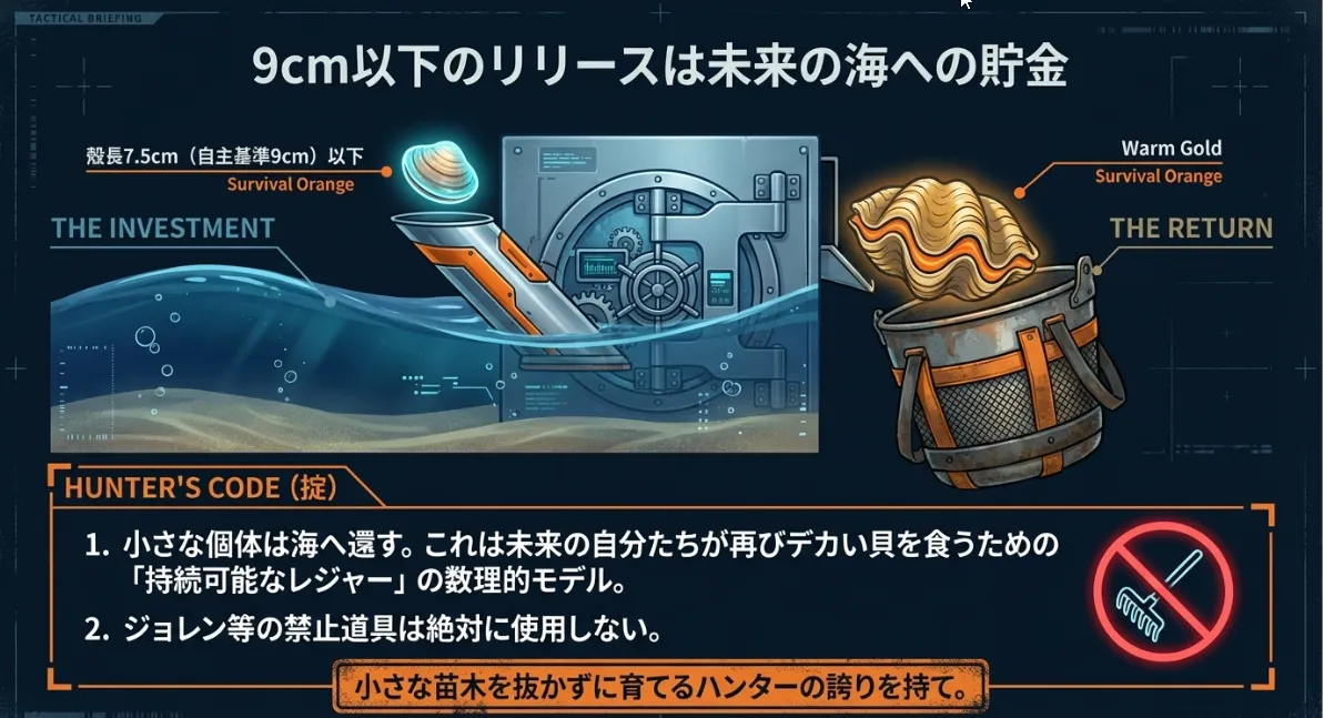 アサリ掘りの常識を捨て、冷水域特有の生態と物理法則を理解すれば、バケツが溢れるほどの達成感と最高の味が待っています。
